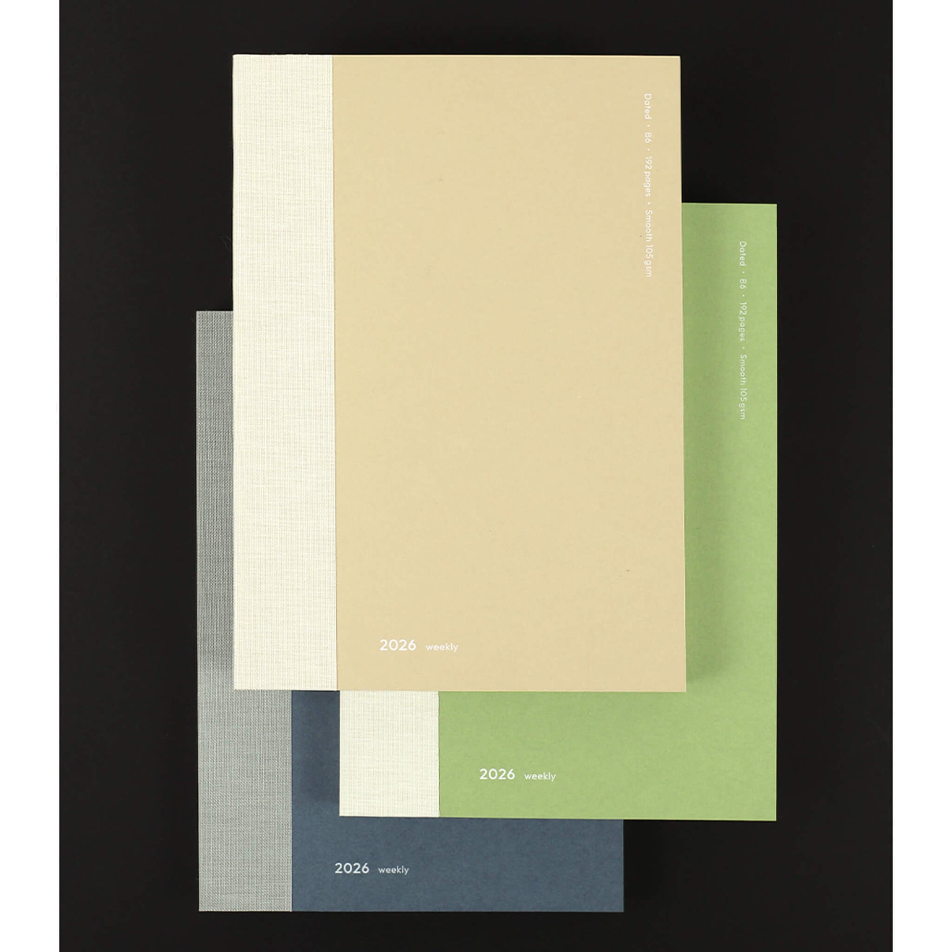 This Paperian simple journal is designed to help you freely record your day. It's structured over 13 months and 57 weeks, starting in December 2025 and lasting until December 2026. The B6 weekly journal features high-quality paper (105gsm) which withstands all different kinds of pens and prevent ink bleeding. It is made with bright paper that allows for a smoother writing experience when writing with a fountain pen and highlights the colour of the ink. It comes with a clear PVC cover and a pen holder.